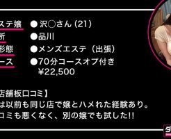 【品川】沢○さん【メンエス】